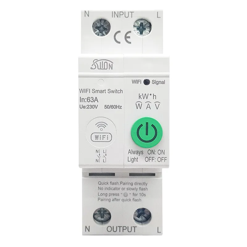 Это высококачественное электрическое устройство сочетает в себе точное измерение и интеллектуальное управление, поддерживая два режима связи WiFi и RS485 для обеспечения стабильного и надежного удаленного подключения. С номинальным током до 63 А и сроком службы более 100 000 операций, оно обеспечивает выдающуюся и стабильную работу. Выберите из спецификаций 1P или 2P в соответствии с вашими требованиями.